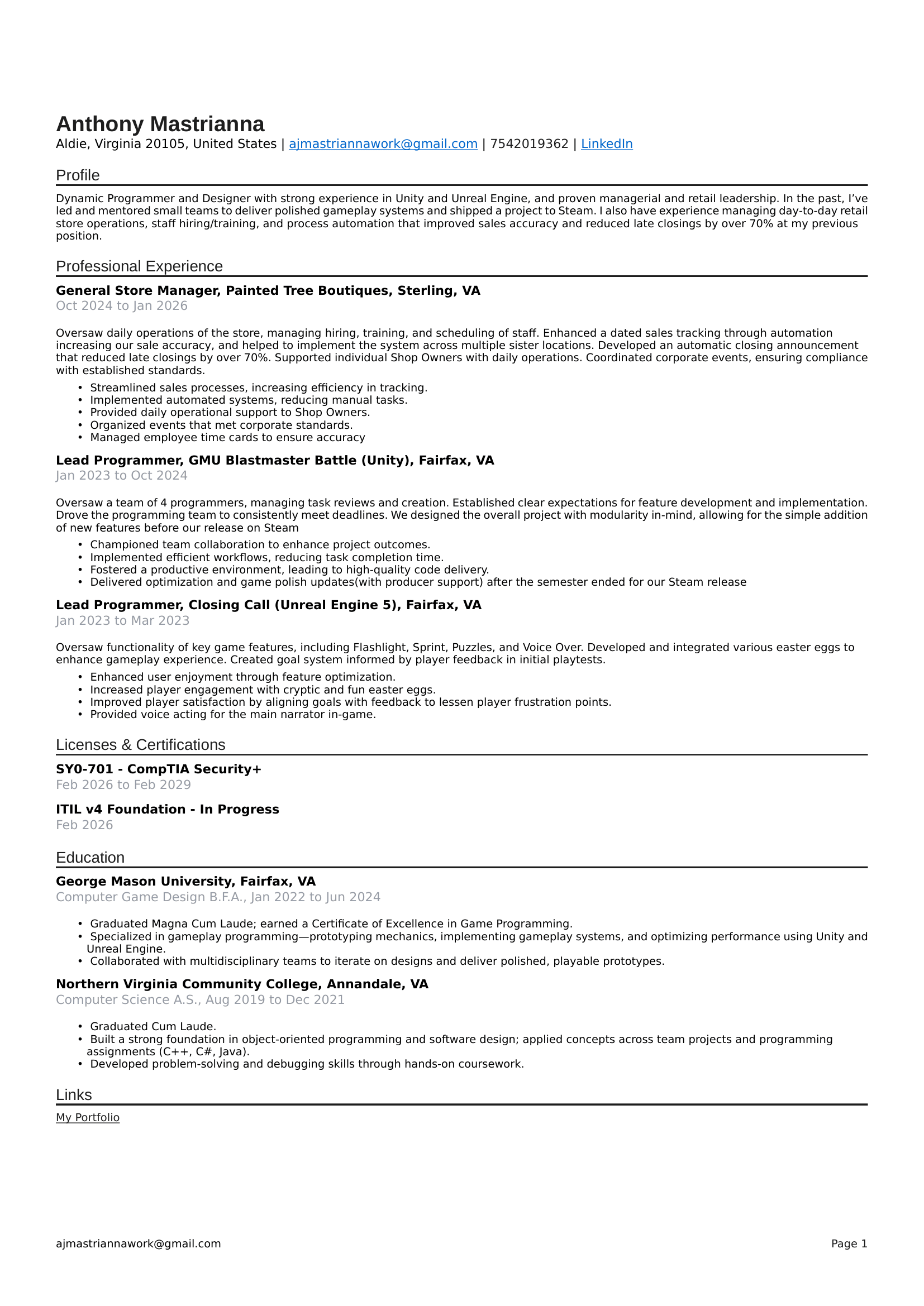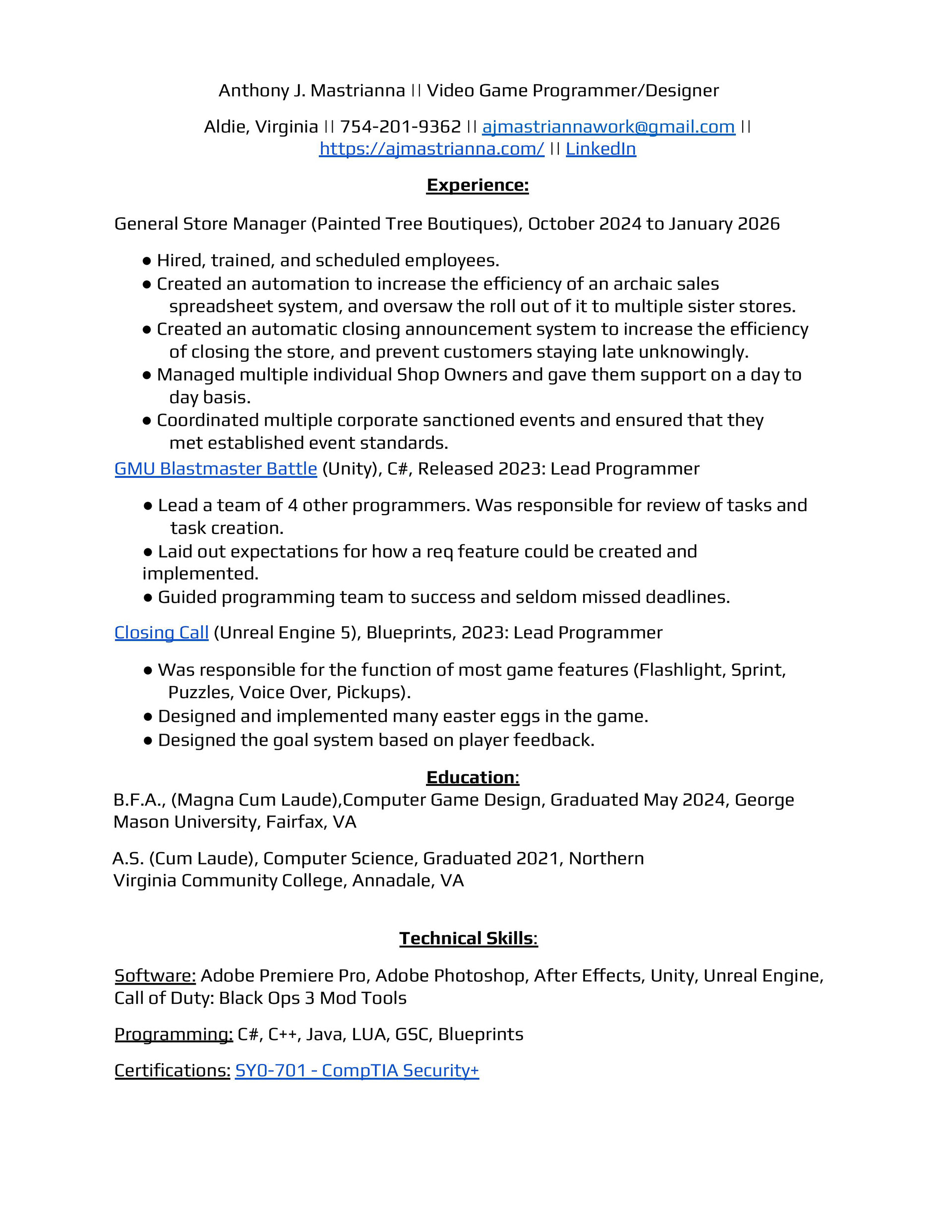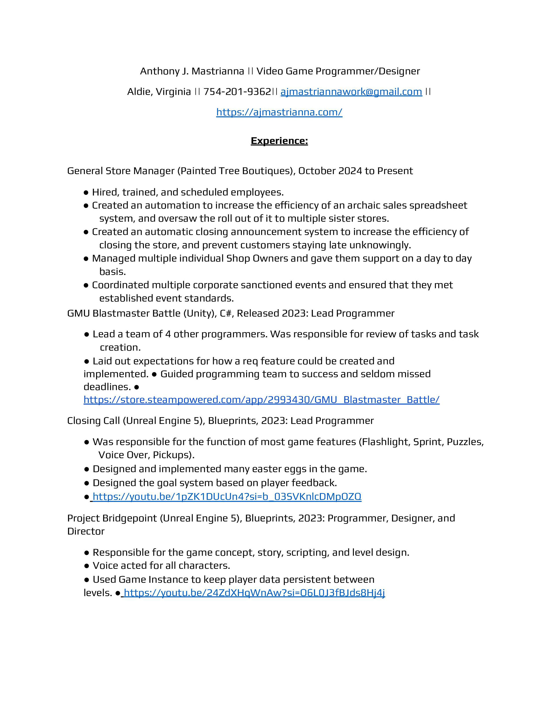 AJ Mastrianna | Game Programmer/Designer